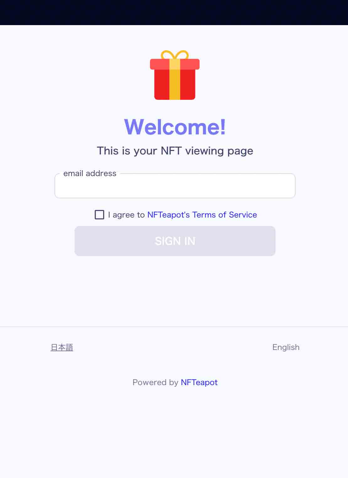 After clicking the link, please enter your email that was used to purchase the NFT and agree to NFTeapot's Terms of Service.