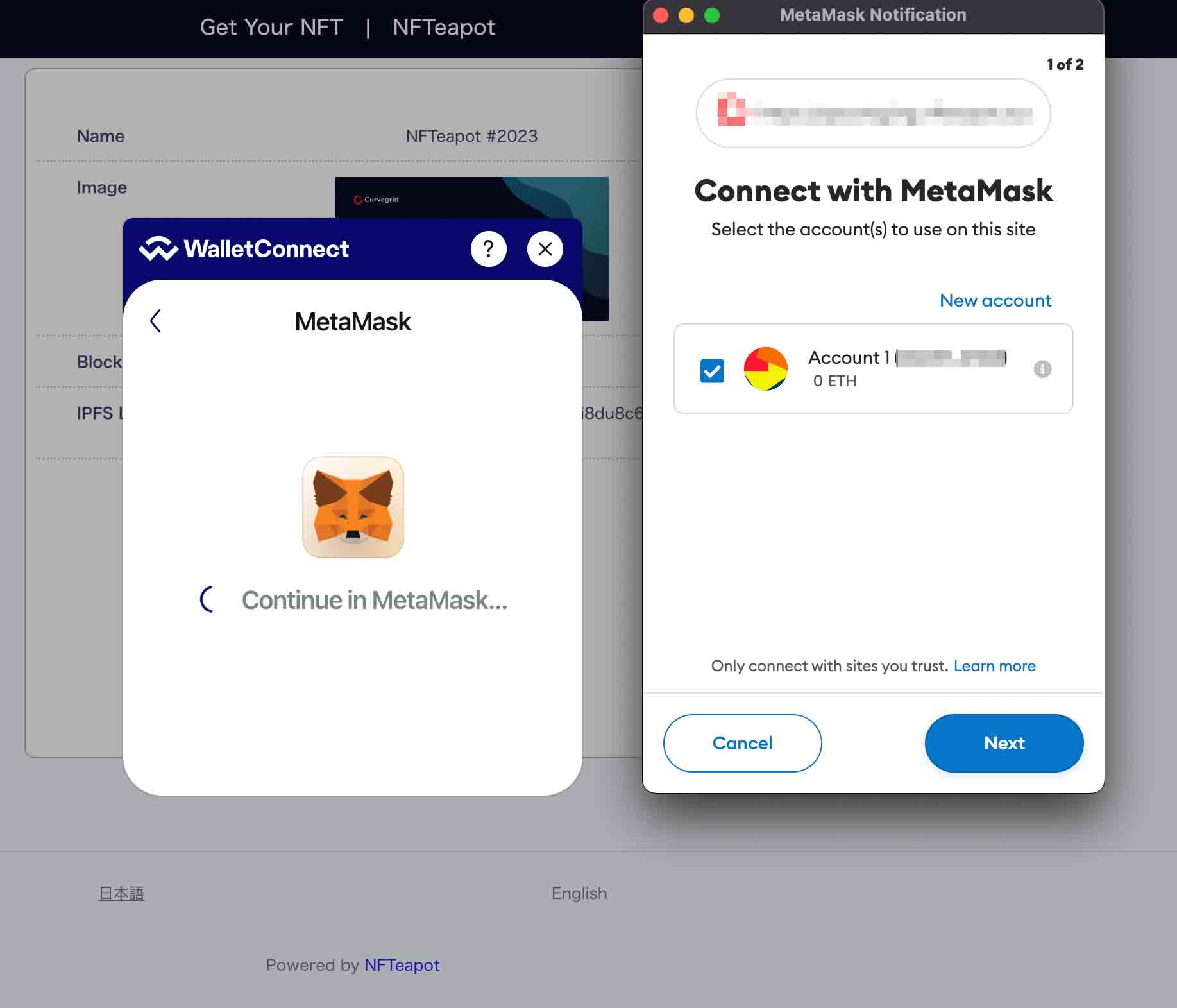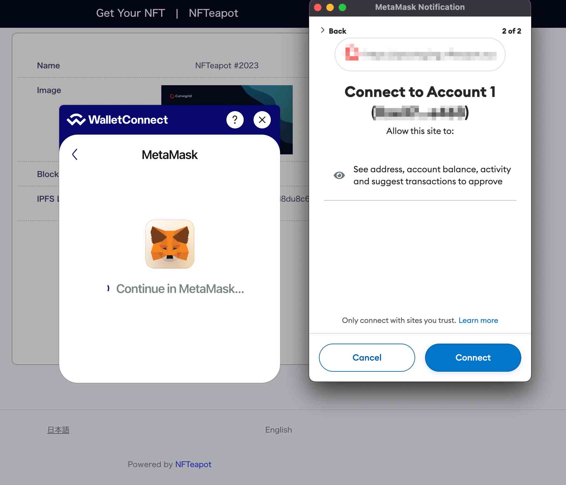 After your wallet is connected, you can now receive your newly purchased NFT!