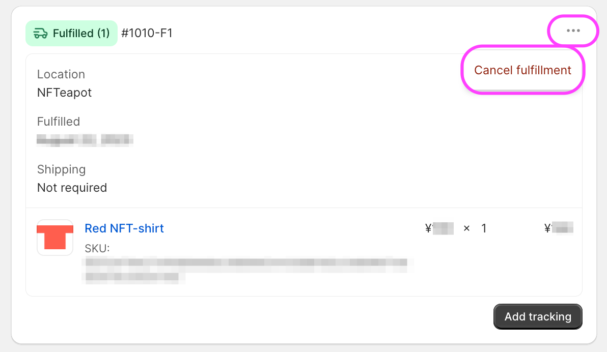 Cancel the fulfillment by selecting